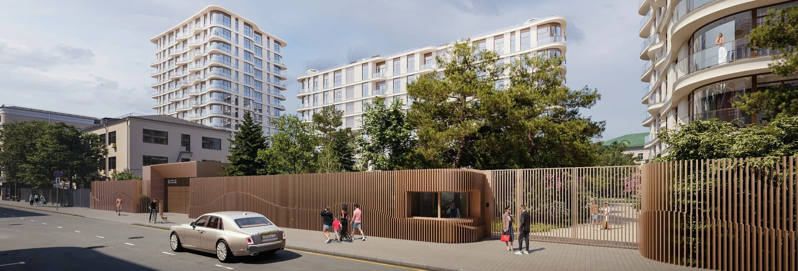 На закрытой территории находится самый большой в элитном классе в пределах Садового кольца двор-парк площадью 1,4 га с фонтаном, ручьём, зонами для воркаута, тихого отдыха и развивающей детской площадкой. Только для жителей в доме предусмотрен Клубный Дом.