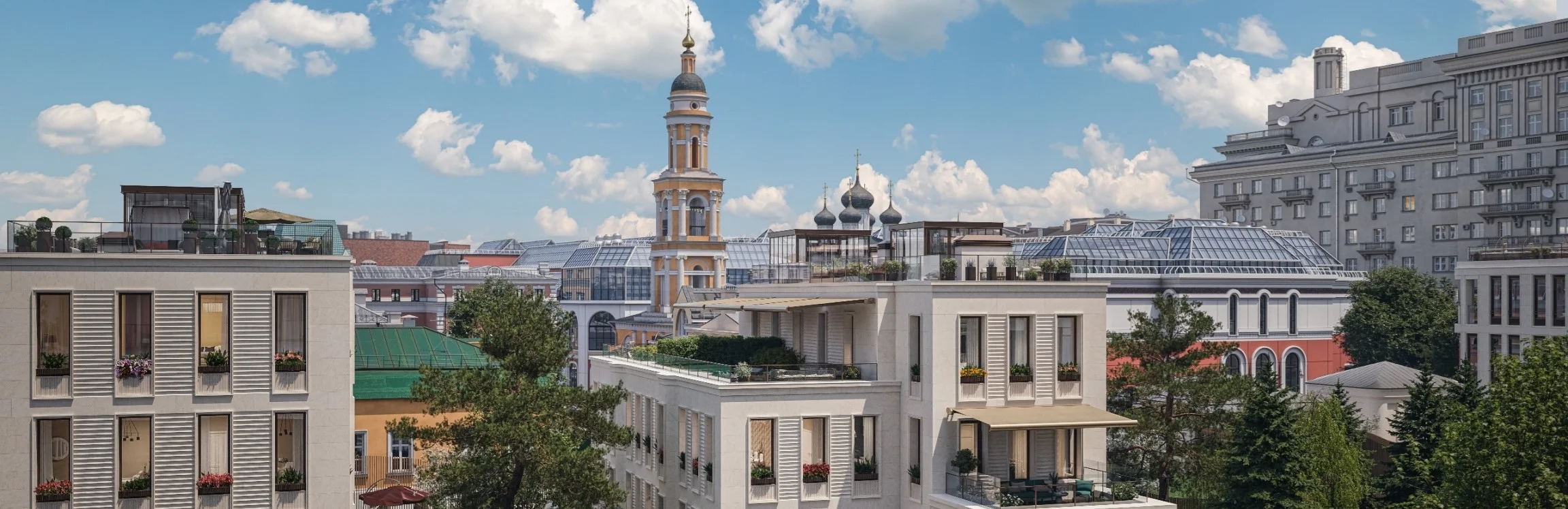 «Лаврушинский» — бескомпромиссный дом с лучшими видами на Кремль. Благодаря расположению всего в одном километре от Кремля, своей высоте и малоэтажной окружающей застройке, из квартир открываются панорамные виды на главные достопримечательности центра Москвы, включая храм Христа Спасителя и собор Василия Блаженного.