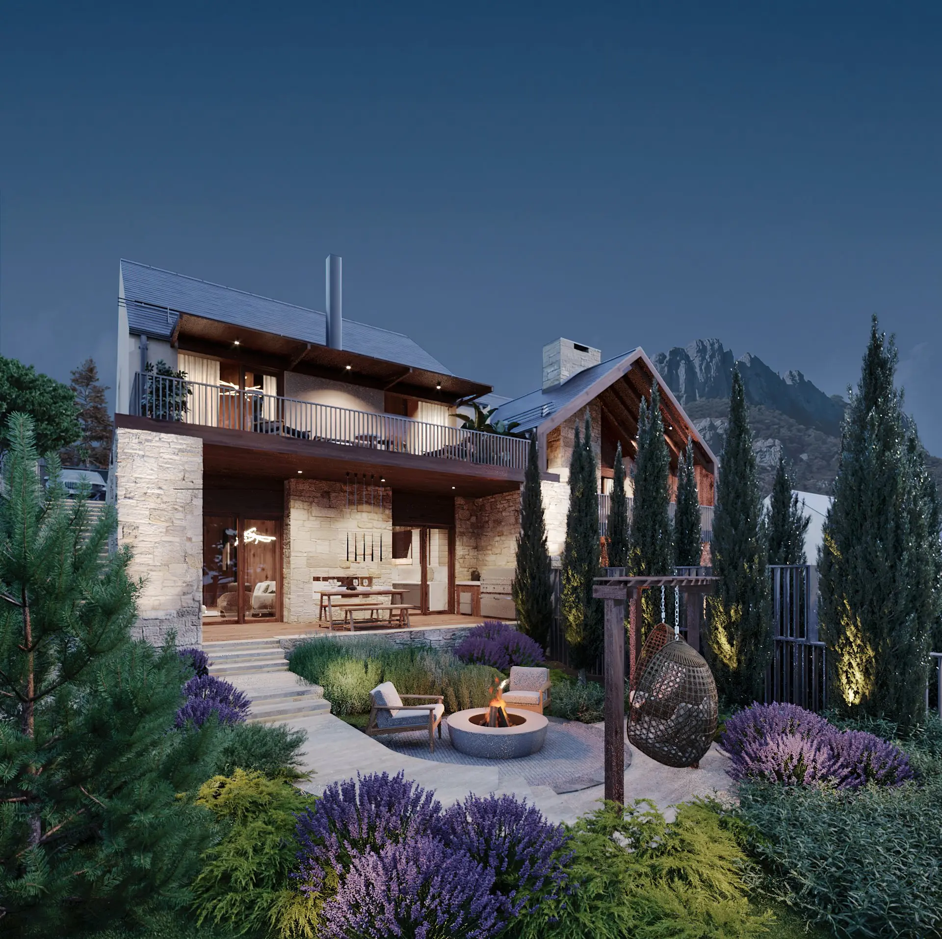 На территории площадью 10,2 гектара спроектировано 85 резиденций площадью от 170 до 585 м² с земельными участками от 5 до 21 сотки. Архитектура поселка выдержана в стиле «шале» — с выразительными двускатными кровлями, панорамным остеклением и использованием натуральных материалов, гармонично вписывающихся в природный ландшафт.