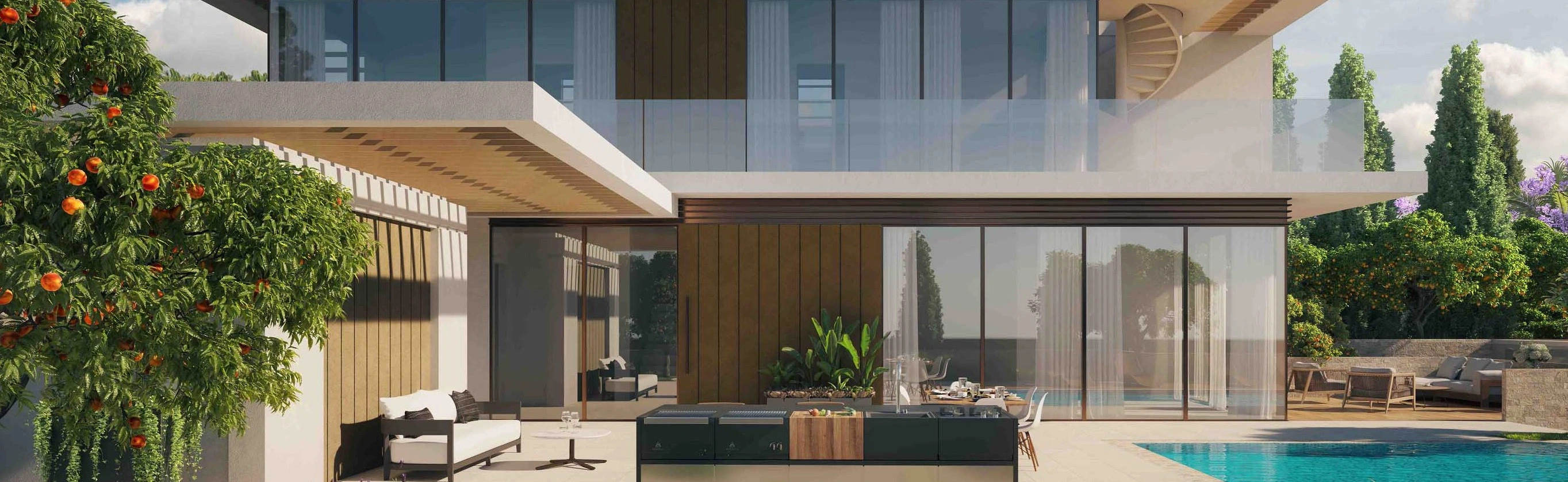 Инфинити-бассейн, гостиные панорамным остеклением, система «умный дом» и премиальная отделка, включая итальянскую керамику — в каждой вилле.
