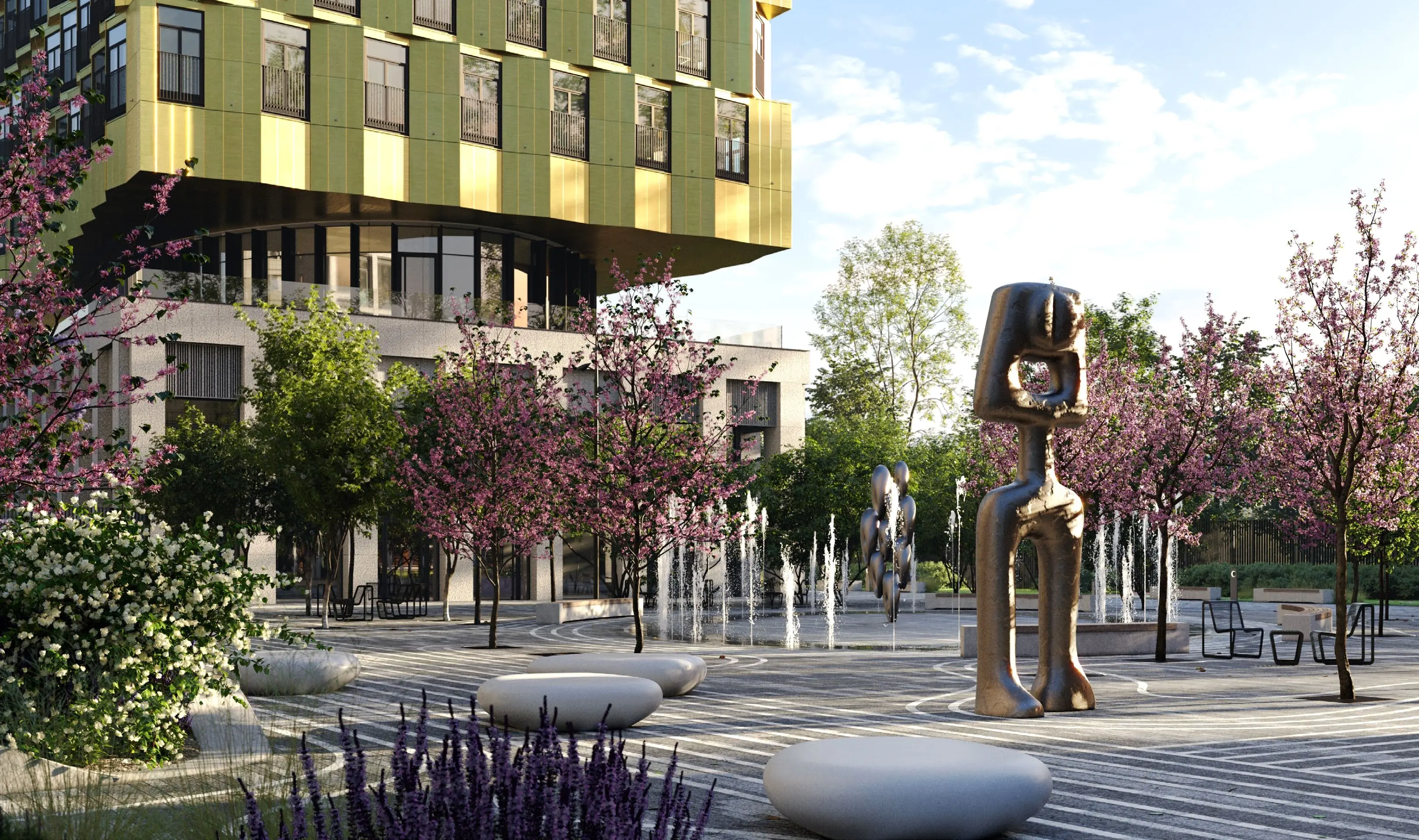 Комплекс объединяет шесть корпусов: три эффектные башни и три клубных дома переменной этажности, которые создают архитектурную гармонию.