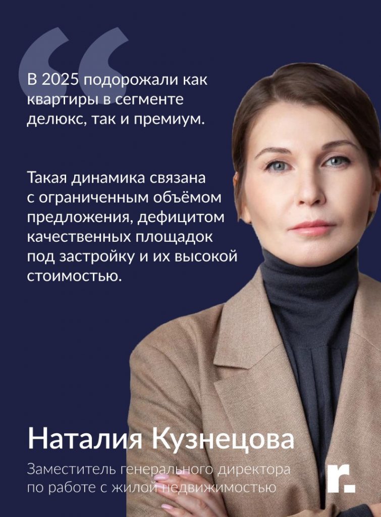 При этом цены на элитное жильё продолжают расти из-за дефицита площадок под застройку. Квартиры в сегменте делюкс в 2025 году подорожали на 3,5% год к году, в премиум-классе — на 14,2% год к году.