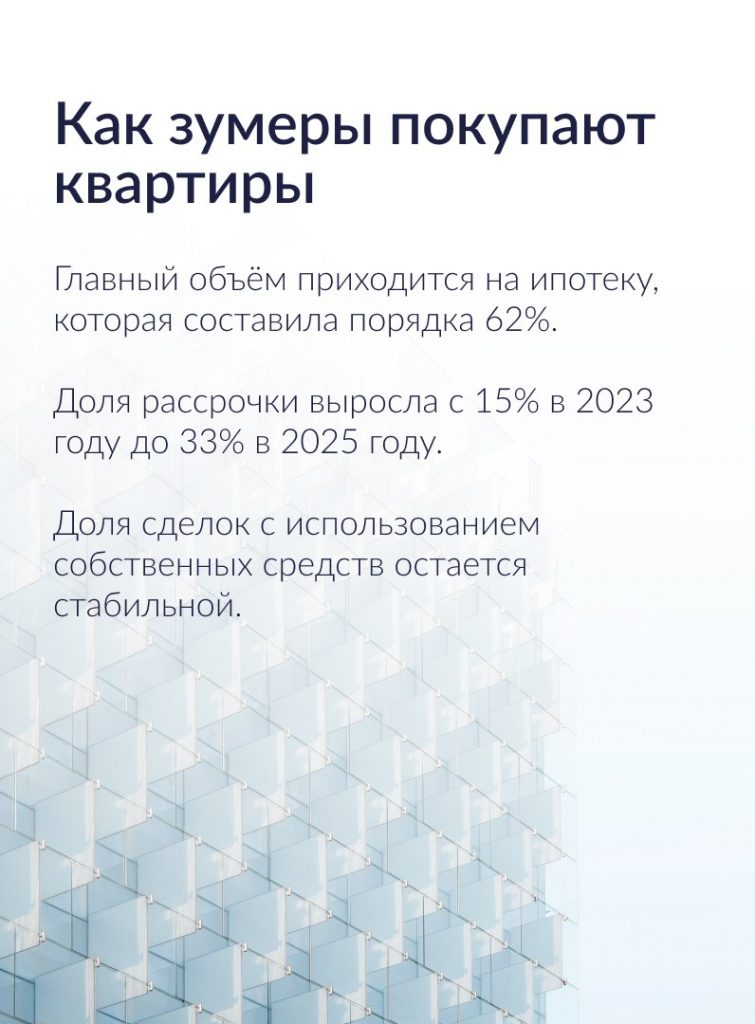 Наше исследование покупательской активности зумеров на московском рынке недвижимости, проведённое совместно с девелопером Dominanta, это подтверждает.