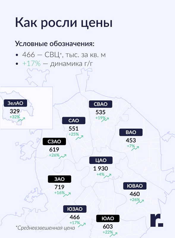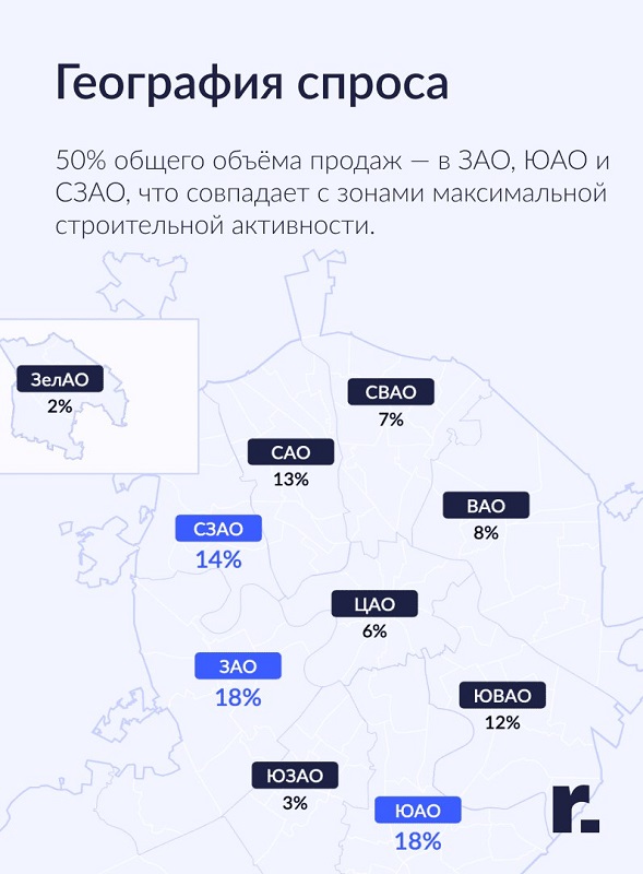 Подробная аналитика по спросу и предложению, цены по округам и прогноз — в полной версии отчёта Ricci.