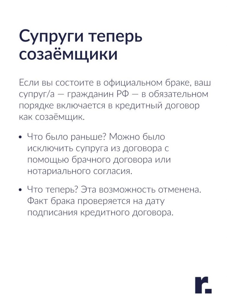 Они становятся строже: супруг теперь — обязательный созаёмщик, банки будут проверять не только свидетельства о рождении, но и вашу совместную регистрацию с детьми. Эти нововведения уже подтвердили крупные банки.